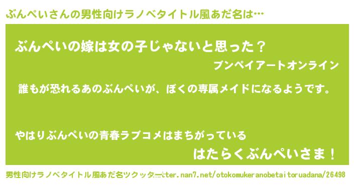 | 女子向けラノベタイトル風あだ名 | 『異世界でカフェぶんぺいを開店しました。』 |
