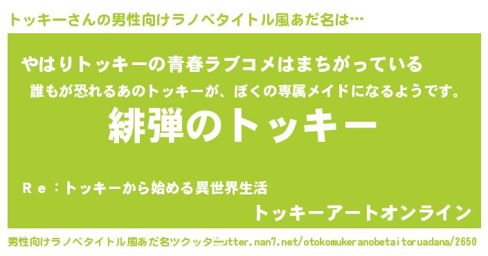 | 女子向けラノベタイトル風あだ名 | 『シンデレラトッキー家の靴箱館』 |