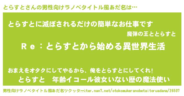 | 肩書あだ名 | 『とらすと総統』『とらすとディレクター』 |