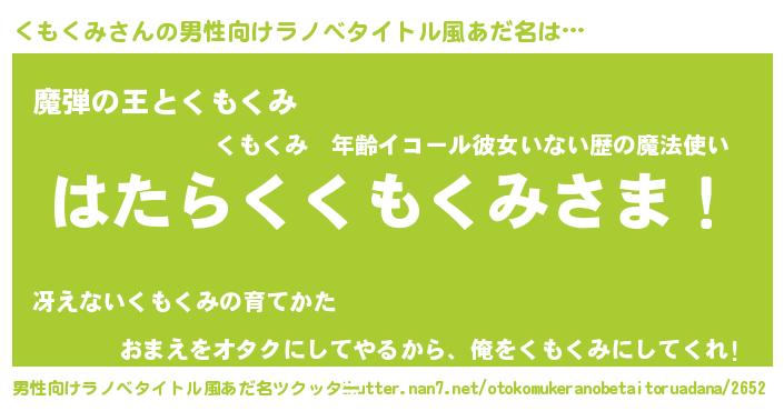 | 意味不明あだ名 | 『住所不定無職くもくみ(43歳)』 |