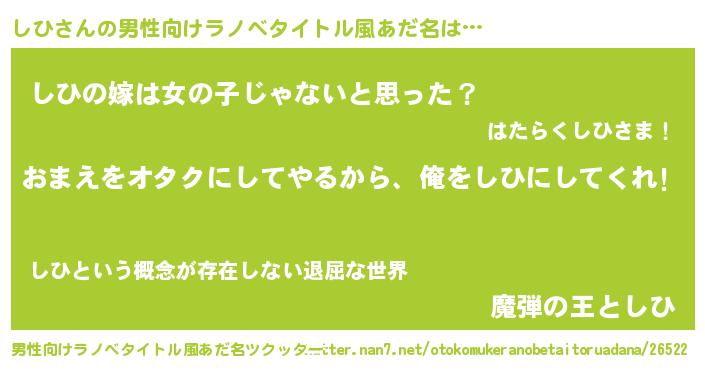 | ヘコむあだ名 | 『しひお』『しひ(苦笑)』『しひにー』 |