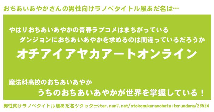 | 女子向けラノベタイトル風あだ名 | 『おちあいあやか姫と円卓の騎士』 |