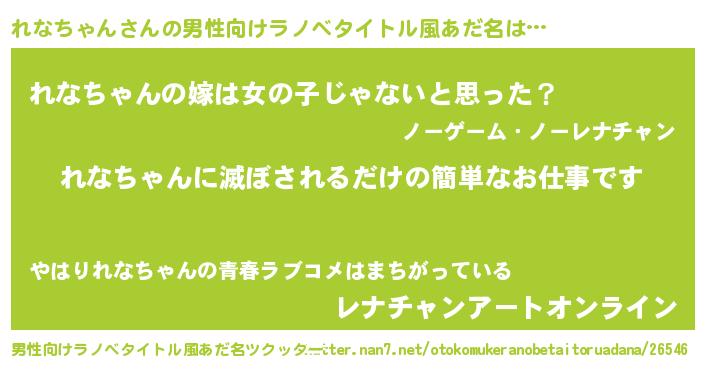 | ポケモン風あだ名 | 『レナゴンZ』『ヒレナチャン』 |