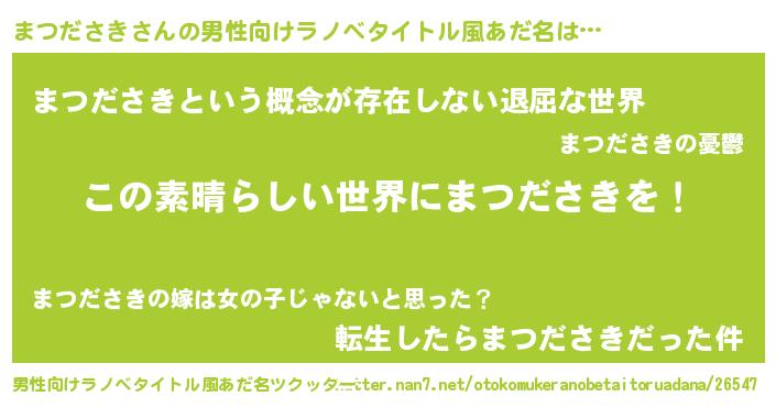 | 意味不明あだ名 | 『住所不定無職まつださき(89歳)』 |