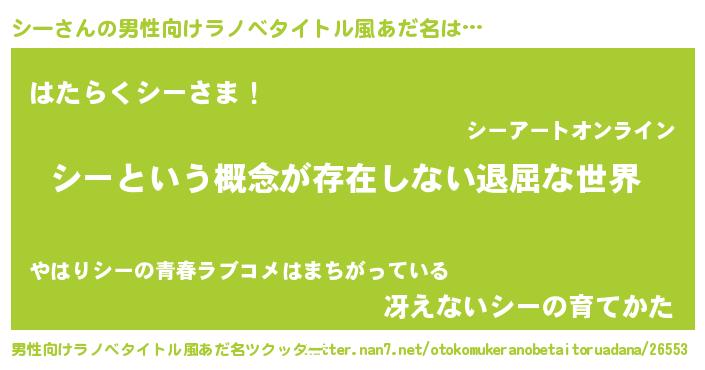 | 女子向けラノベタイトル風あだ名 | 『異世界で失敗しない100のシー』 |