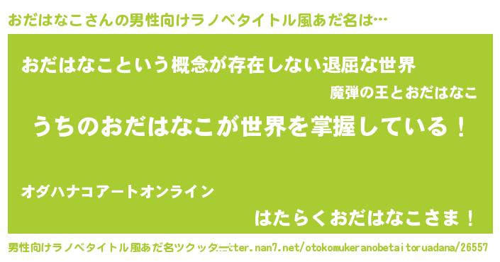 | 女子向けラノベタイトル風あだ名 | 『男装おだはなこの憂鬱な任務』 |