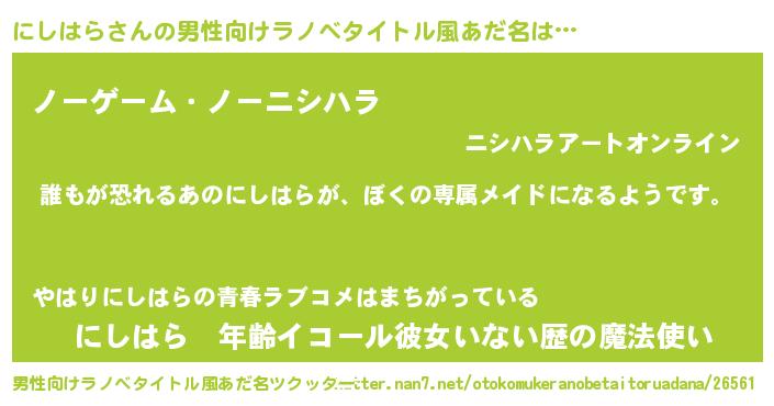 | ヘコむあだ名 | 『にしはら(笑)』『にしもー』 |