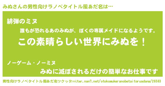 | 意味不明あだ名 | 『住所不定無職みぬ(50歳)』『永久保存みぬ』 |