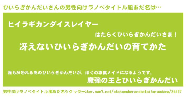 | 女子向けラノベタイトル風あだ名 | 『男装ひいらぎかんだいの憂鬱な任務』 |