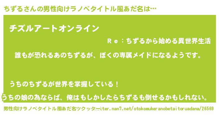 | ヘコむあだ名 | 『ちずる(遠い目)』『ちずもー』 |
