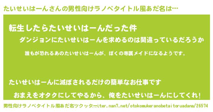 | 胡散臭い通販商品みたいなあだ名 | 『来世でも幸せになれる健康食品…その名も「たいせいはーん」』 |