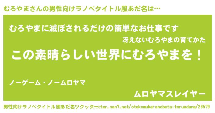 | 女子向けラノベタイトル風あだ名 | 『悪役むろやまに転生したようですが、知った事ではありません』 |