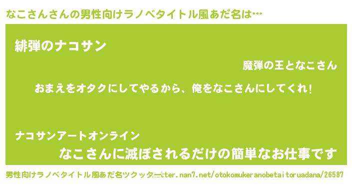 | 女子向けラノベタイトル風あだ名 | 『なこさん夫妻のなれそめ』 |