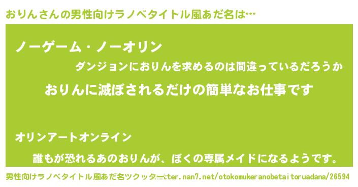 | ヘコむあだ名 | 『おりん(震え声)』『おりっ子』 |