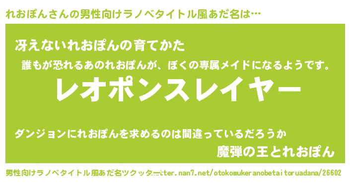 | ヘコむあだ名 | 『れおぽん(小並感)』『れお太郎』 |