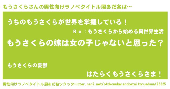 | 意味不明あだ名 | 『とにかく怪しいもうさくら』 |
