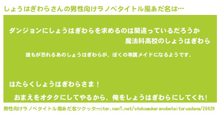 | ヘコむあだ名 | 『しょうはぎわら(笑)』『しょ太郎』 |
