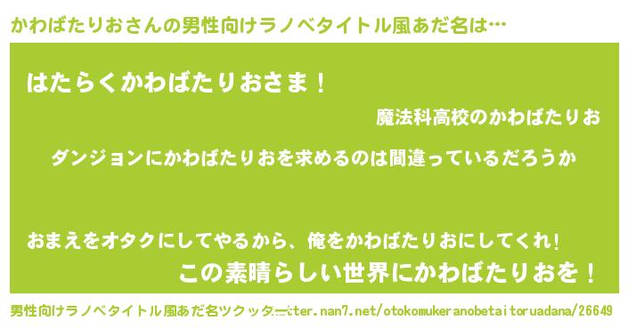 | 意味不明あだ名 | 『とにかく怪しいかわばたりお』 |