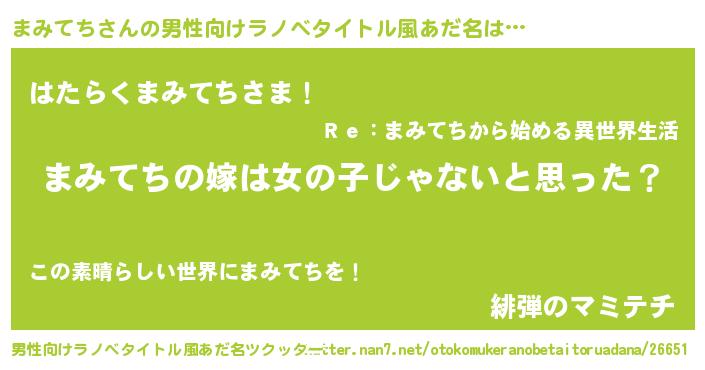 | 女子向けラノベタイトル風あだ名 | 『まみてちの卵を拾いまして』 |