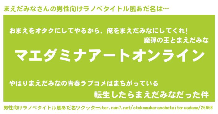 | 胡散臭い通販商品みたいなあだ名 | 『億万長者になれる水晶球…その名も「まえだみな」』 |