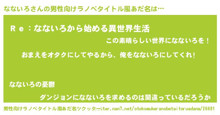 | 女子向けラノベタイトル風あだ名 | 『なないろ恋絵巻』『闇のなないろ』 |