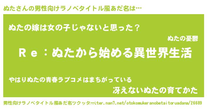 | 女子向けラノベタイトル風あだ名 | 『ぬたストレイドッグス』 |