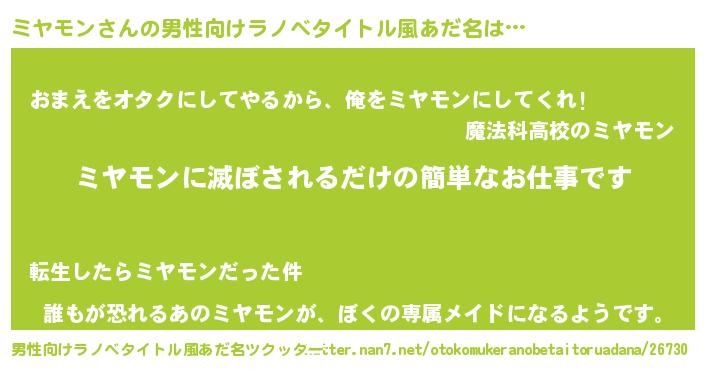 | 女子向けラノベタイトル風あだ名 | 『横柄ミヤモンと宰相陛下』 |