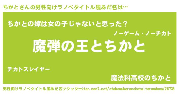 | 意味不明あだ名 | 『住所不定無職ちかと(3歳)』『自称ちかと』 |