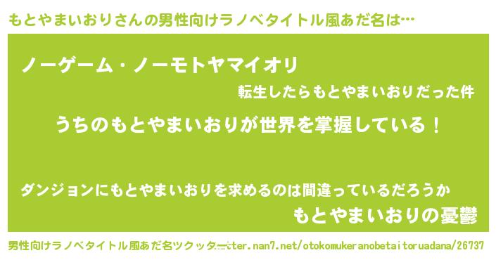 | 欧米人風あだ名 | 『もとやまいおり・ステッグマイヤー』 |