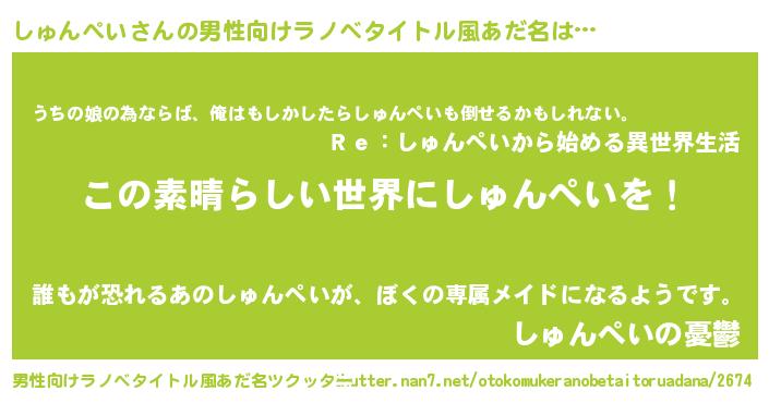 | 女子向けラノベタイトル風あだ名 | 『悪役しゅんぺいに転生したようですが、知った事ではありません』 |