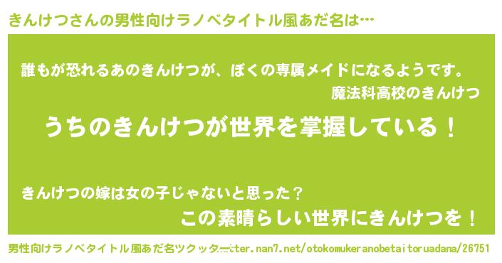 きんけつさんの男性向けラノベタイトル風あだ名をツクッター!