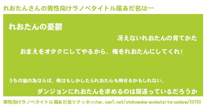 | 女子向けラノベタイトル風あだ名 | 『れおたん夫妻のなれそめ』 |