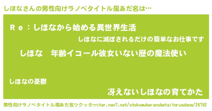 | 意味不明あだ名 | 『ヨモギ科しほな属』『自称しほな』 |