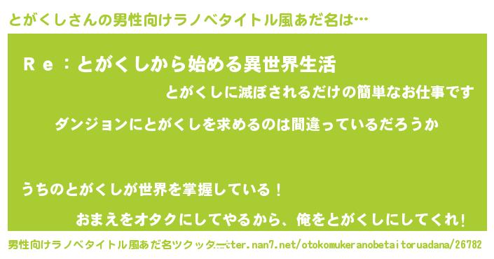 | 女子向けラノベタイトル風あだ名 | 『とがくしは平凡を望む』『闇のとがくし』 |
