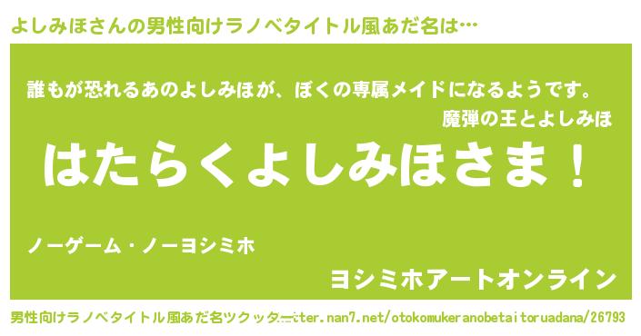 | ヘコむあだ名 | 『よしみほ(小並感)』『よしにー』 |