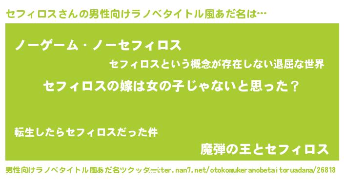 | 女子向けラノベタイトル風あだ名 | 『セフィロスの卵を拾いまして』 |