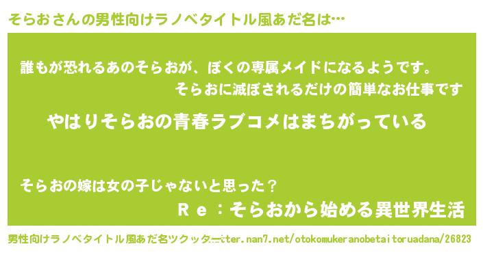 | ヒーロー風カッコイイあだ名 | 『ウルトラそらおマン』『ネオソラオ』 |