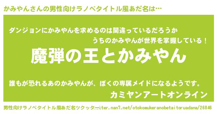 | 女子向けラノベタイトル風あだ名 | 『かみやんが死なない童話 林檎のかみやんの診療簿』 |