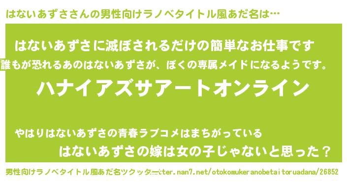 | 胡散臭い通販商品みたいなあだ名 | 『億万長者になれる霊験あらたかなお札…その名も「はないあずさ」』 |