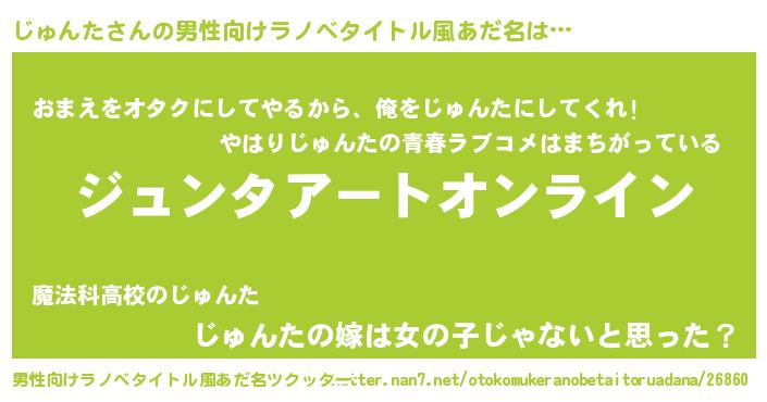 じゅんたさんの男性向けラノベタイトル風あだ名をツクッター!