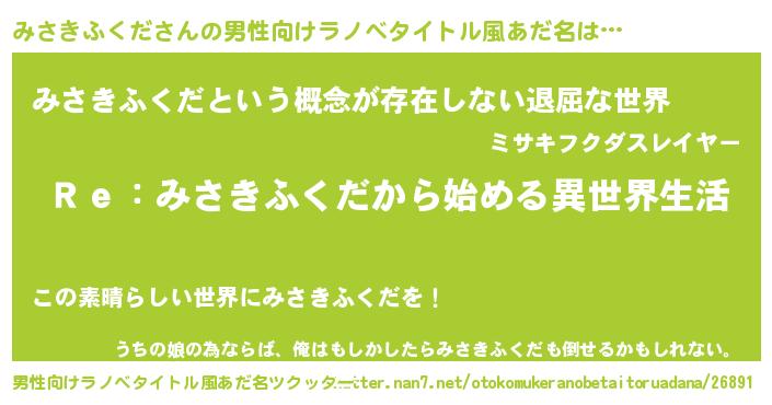 | 意味不明あだ名 | 『自称みさきふくだ』 |