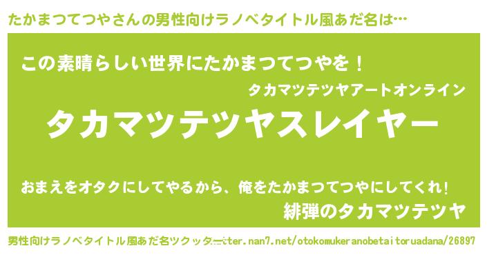 | 女子向けラノベタイトル風あだ名 | 『婚約破棄系悪役たかまつてつやに転生したので、保身に走りました。』 |