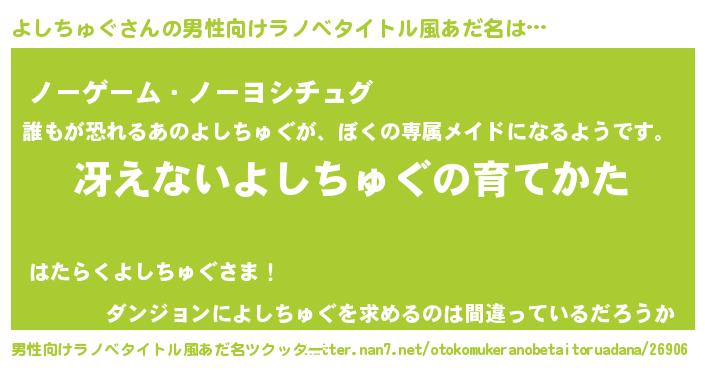| ヘコむあだ名 | 『よしっぺ』『よしちゅぐ(遠い目)』 |