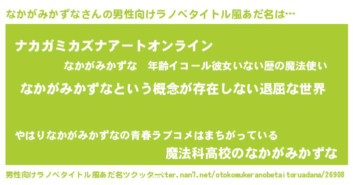 | 女子向けラノベタイトル風あだ名 | 『異世界で失敗しない100のなかがみかずな』 |
