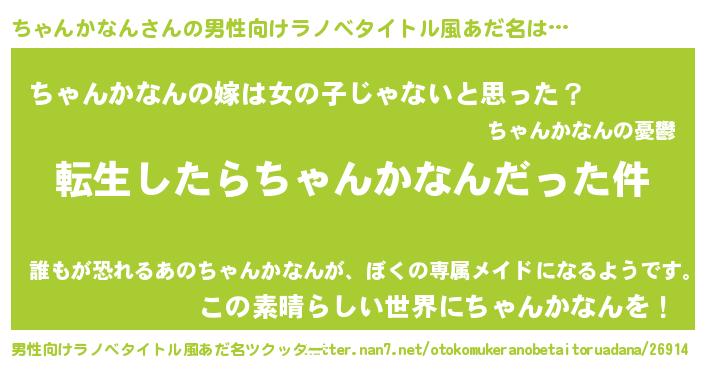| 胡散臭い通販商品みたいなあだ名 | 『伝統あるサプリメント…その名も「ちゃんかなん」』 |