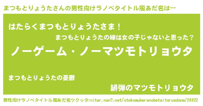 | 女子向けラノベタイトル風あだ名 | 『死神まつもとりょうたの再婚』 |