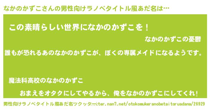 | 女子向けラノベタイトル風あだ名 | 『異世界でカフェなかのかずこを開店しました。』 |