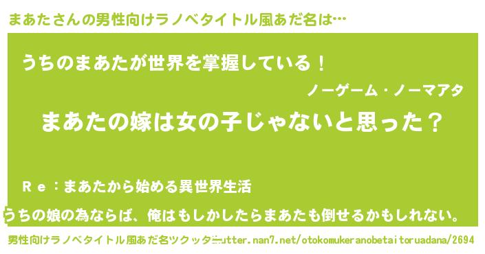 | 女子向けラノベタイトル風あだ名 | 『まあた様がみてる』『まあたの婚約者』 |