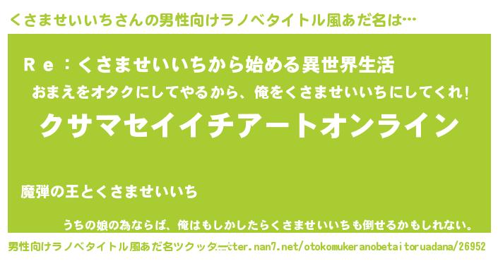 | 女子向けラノベタイトル風あだ名 | 『くさませいいち姫と円卓の騎士』 |