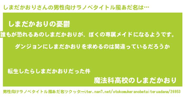 | 女子向けラノベタイトル風あだ名 | 『しまだかおりの卵を拾いまして』 |